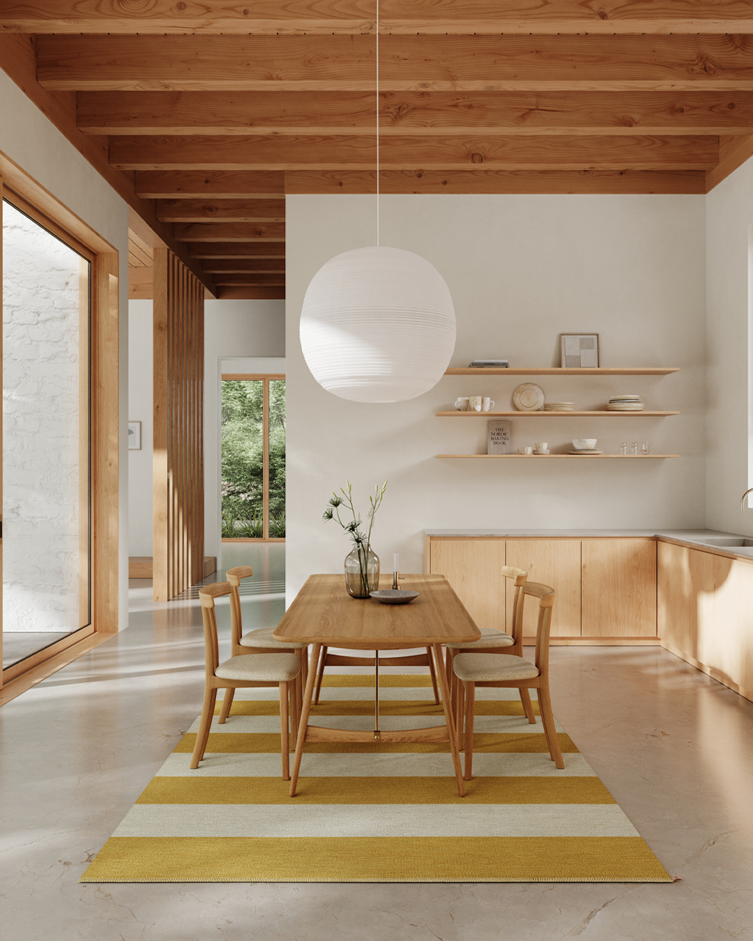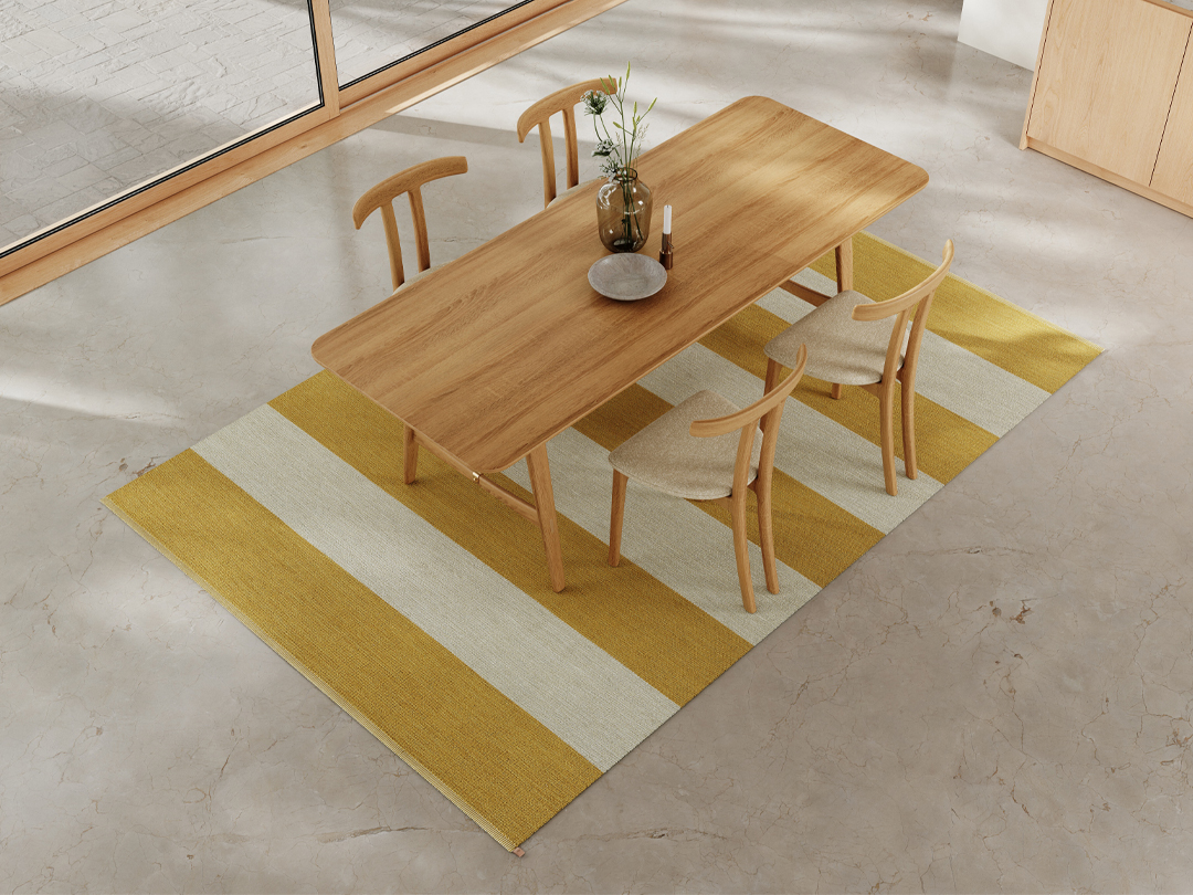 Kasthall Wide Stripe Icon on laadukas leveään raitakuvioon kudottu matto. Kun Kasthall Design Studio päätti lanseerata uudelleen tämän klassisen raitamaton, suunnitteluun käytettiin paljon aikaa juuri oikeiden väriyhdistelmien löytämiseksi. Neljä erilaista väriyhdistelmää ovat saaneet inspiraationsa skandinaavisen väripaletin sävyistä. Mallistoon kuuluvat kaksi rauhallisempaa sävyä, harmaanvihreä ja vaaleansininen, sekä kontrastisempina sävyinä kaunis keltainen ja keskiyönmusta. Sävyt muodostavat raikkaan kontrastin luonnonvalkoisen pohjan kanssa. Malliston kuvio- ja väriyhdistelmät eivät vanhene koskaan, vaan sopivat vuodesta toiseen moderniin kotiin. Maton tiivis kudottu pinta on erittäin kestävä, ja se on helppo pitää puhtaana. Aseta Kasthall Wide Stripe Icon -matto esimerkiksi eteistilaan, ruokapöydän alle, työhuoneeseen, makuuhuoneeseen tai olohuoneeseen, ja nauti sen ajattomasta kauneudesta vuosia. Tämä villamatto on erinomainen valinta niin kotiin kuin julkitilaan. Tutustu myös ruudulliseen Kasthall Checkerboard Icon -mattoon, jota on saatavissa samoissa kauniissa sävyissä.